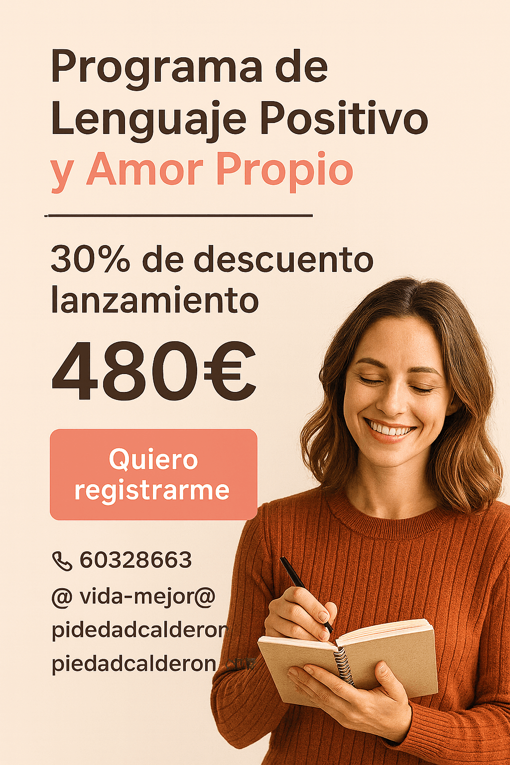 Por eso he creado este Programa de Lenguaje Positivo y Amor Propio, un proceso profundo, práctico, humano y lleno de herramientas reales para ayudarte a reconectar contigo.